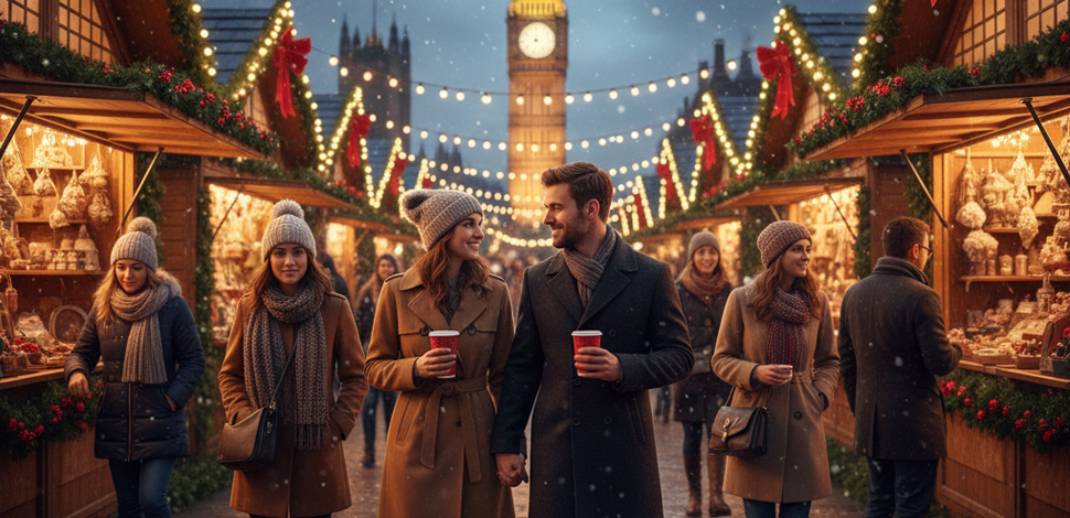 Fra det øyeblikket du ankommer, vil du bli dratt inn i Londons magiske juleatmosfære. Gå deg vill blant de koselige bodene på byens mange julemarkeder, hvor du kan finne alt fra håndlaget pynt og unike gaver til deilige julegodter og varmende gløgg. Lukten av kanel og pepperkaker fyller luften mens du nyter den festlige stemningen. Kanskje du til og med finner den perfekte gaven til noen du er glad i!